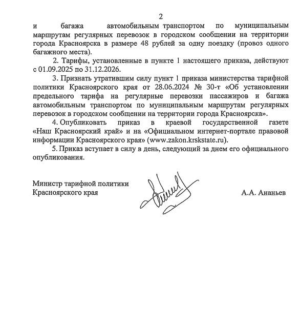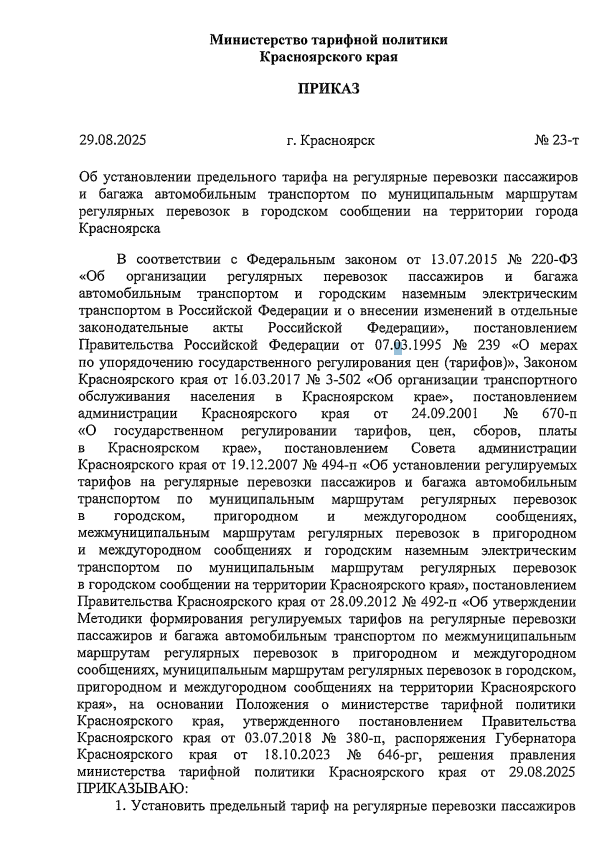 Приказ опубликовали на сайте министерства тарифной политики края. Известно, что новые тарифы будут действовать до декабря 2026 года.