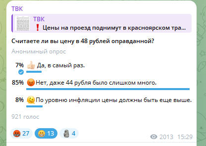 В нашем Telegram-канале мы проводим опрос и спрашиваем у подписчиков: оправдана, по их мнению, новая цена на проезд. Проголосовать и поделиться мнением можно по ссылке.