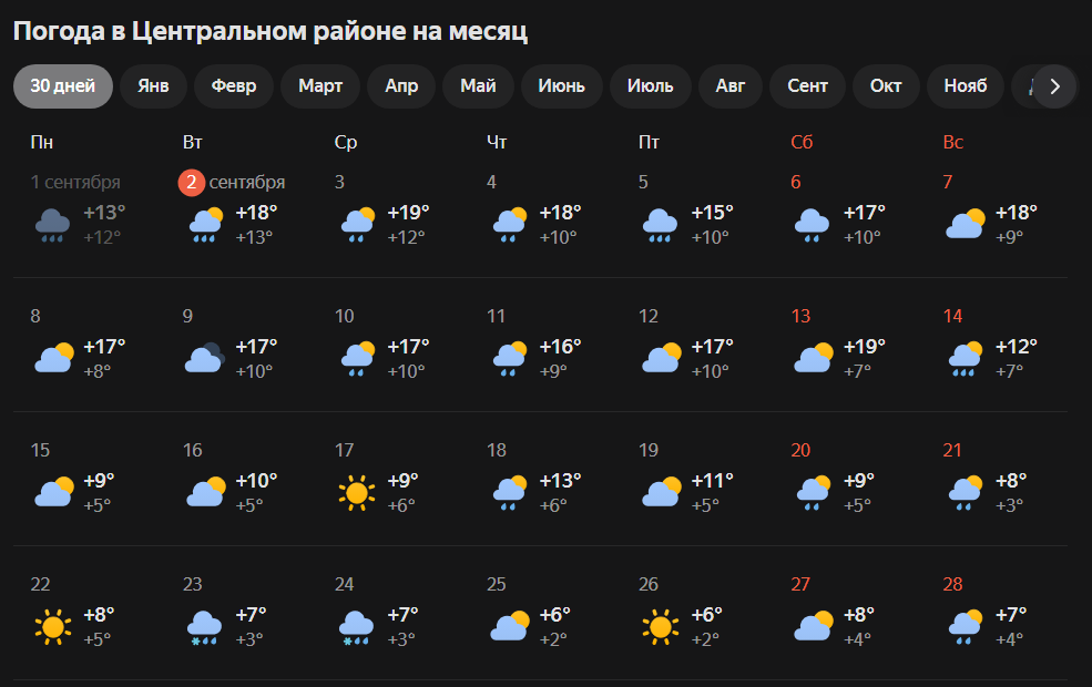 Напомним, старт отопительного сезона зависит от среднесуточной температуры: она должна держаться в пределах +8℃ в течение 5 дней. Такая погода, судя по онлайн-сервисам, начнется в Красноярске как раз 15 сентября. При этом среднесуточные +8℃ на постоянной основе установятся в городе примерно с 19 сентября.