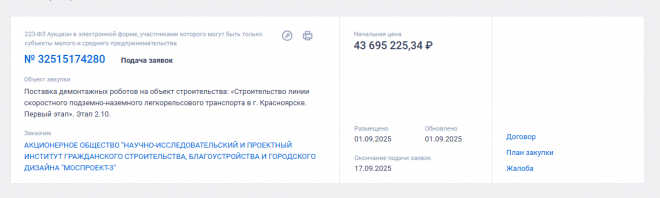 Для строительства метро в Красноярске заказали роботов за 43 млн рублей