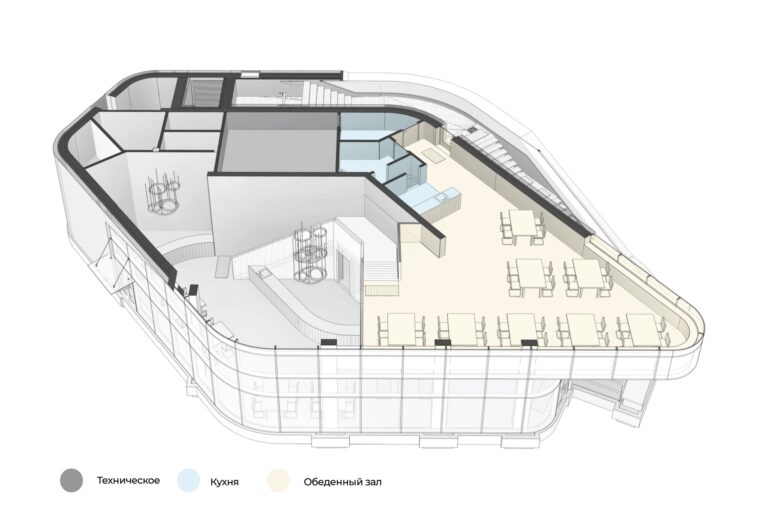 Проект здания на Николаевской сопке показали в красноярской архитектурной мастерской А2. Большую часть помещений, судя по описанию, займут обеденные залы, а архитектурное остекление позволит наслаждаться видами Красноярска не только снаружи, но и внутри здания.