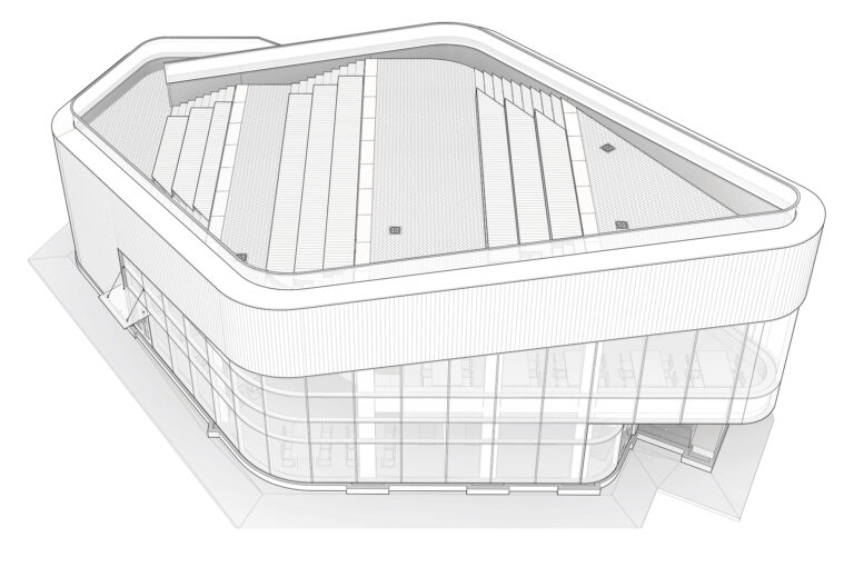 Двухэтажно здание разместят на самой верхней точке сопки – над амфитеатром: по задумке архитекторов, объект будто «вырастает» из него. В зоне между амфитеатром и зданием будет буферная зона с террасой для летнего кафе. В основе образа визит-центра лежит форма спирали, отмечают в мастерской А2.