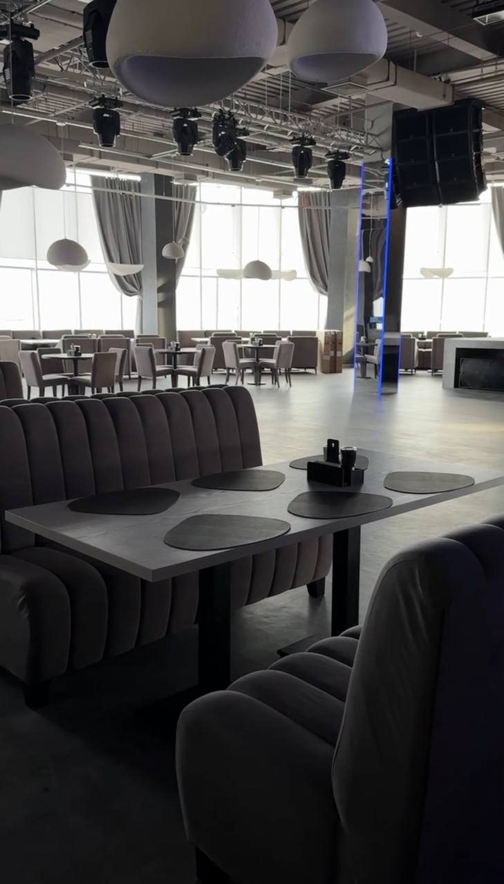 Ресторан занимает 3 этажа, на каждом из которых есть летние террасы с живописным видом на Енисей. Самый большой зал вмещает 250 человек.