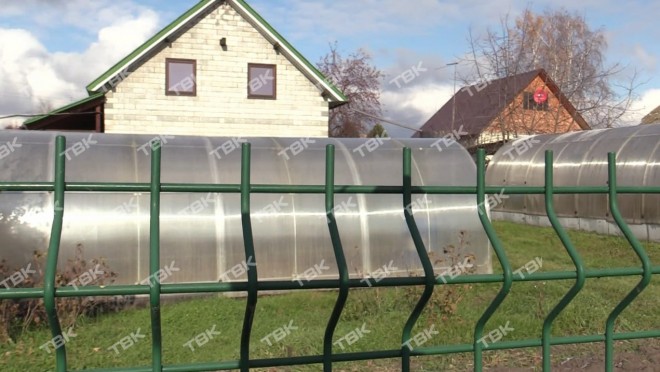 За невысоким зеленым забором видно участок. Там стоит двухэтажный блочный дом с затемненными окнами, гараж, две теплицы, будка для собаки. Именно сюда семья приезжала отдыхать на выходные и оставалась жить летом. Видно, что Усольцевы активно занимались огородом: есть небольшое поле для картофеля, грядки и теплицы, в которых осталась неубранная трава.