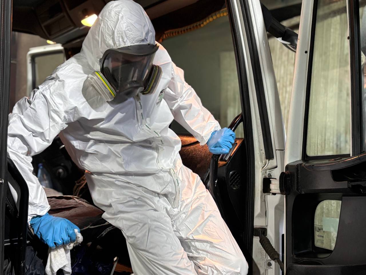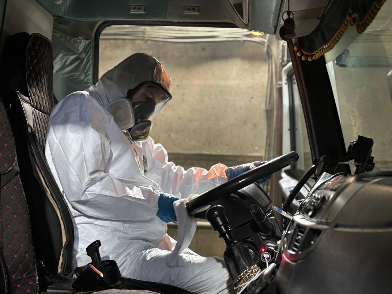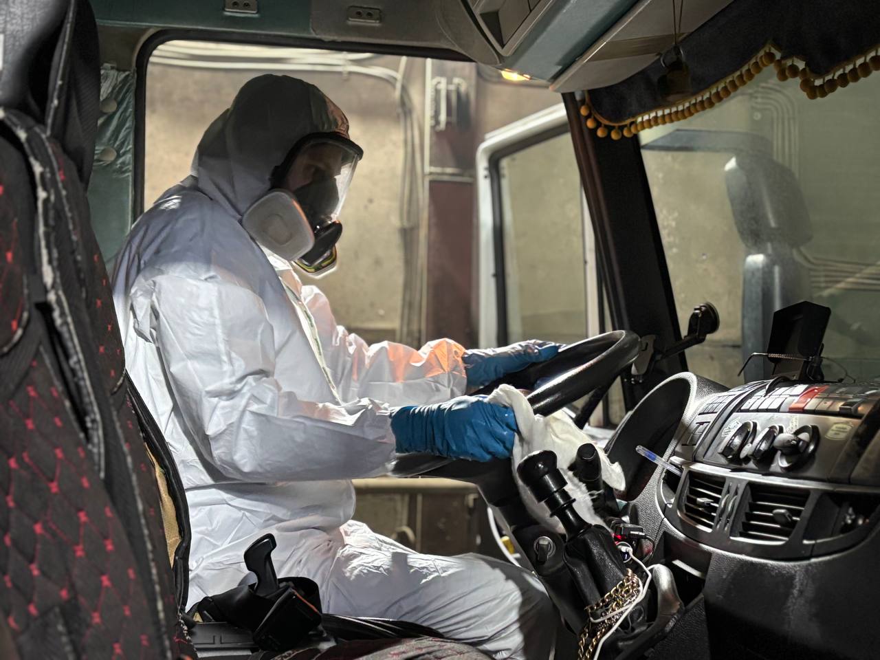 Согласно санитарным правилам, транспортные средства должны обеззараживаться с помощью высокоэффективных дезинфицирующих средств каждые 10 дней. Именно так происходит в автомобильном цехе.