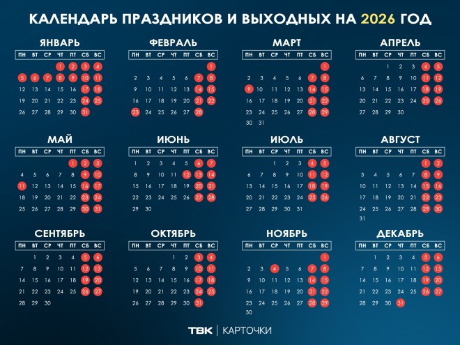 Осенью россиян ждет один праздничный выходной день – в День народного единства, 4 ноября. Последним рабочим днем в 2026 году станет 30 декабря. 31 декабря – выходной день.