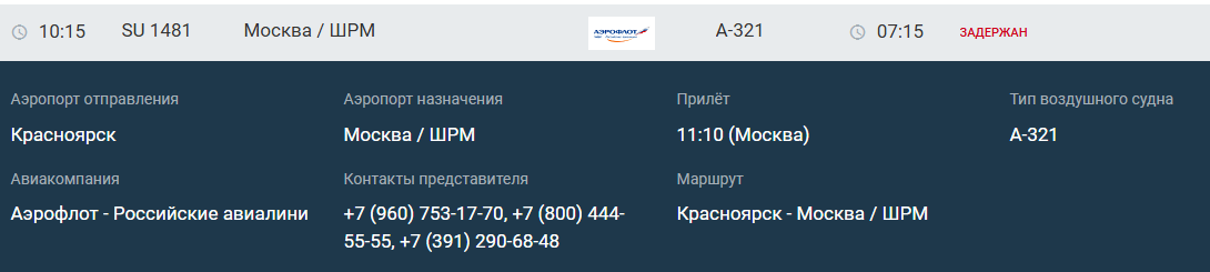 Кроме того, задерживается самолет «Аэрофлота» из Шереметьево в Красноярск.Также на 3 часа задерживается самолет авиакомпании «Аэрофлот» до столицы.