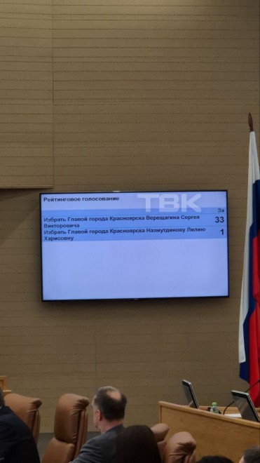 На внеочередной сессии Горсовета избрали нового главу Красноярска. Им стал председатель правительства края Сергей Верещагин. За него депутаты проголосовали почти единогласно.