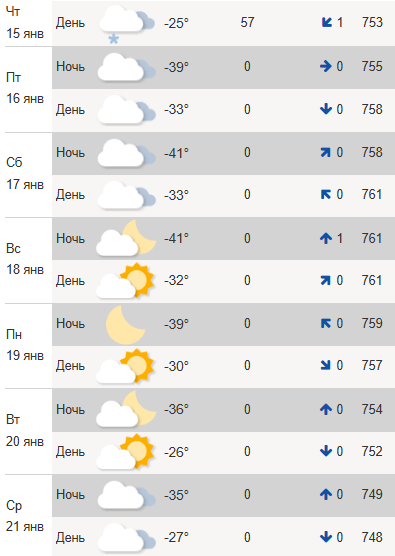 Почти каждый день будет в районе -30°C, а ночами стабильно -40°C.