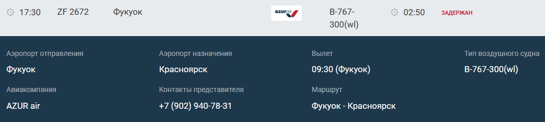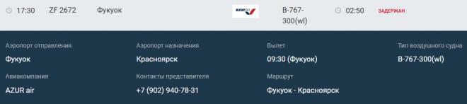 Рейс Красноярск – Фукуок должен был вылететь накануне в 04:00. Сначала его перенесли на 09:00, но спустя время вылет поставили на 16:00.