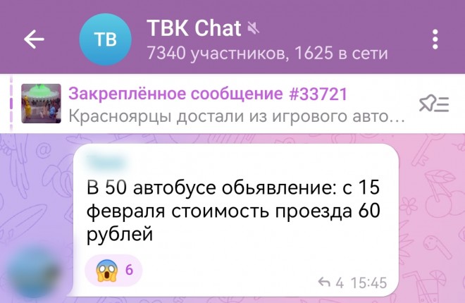 В социальных сетях и Telegram-каналах распространяется информация о якобы предстоящем повышении стоимости проезда в общественном транспорте Красноярска до 60 рублей с 15 февраля. С таким вопросом в редакцию ТВК обратилась одна из подписчиц.