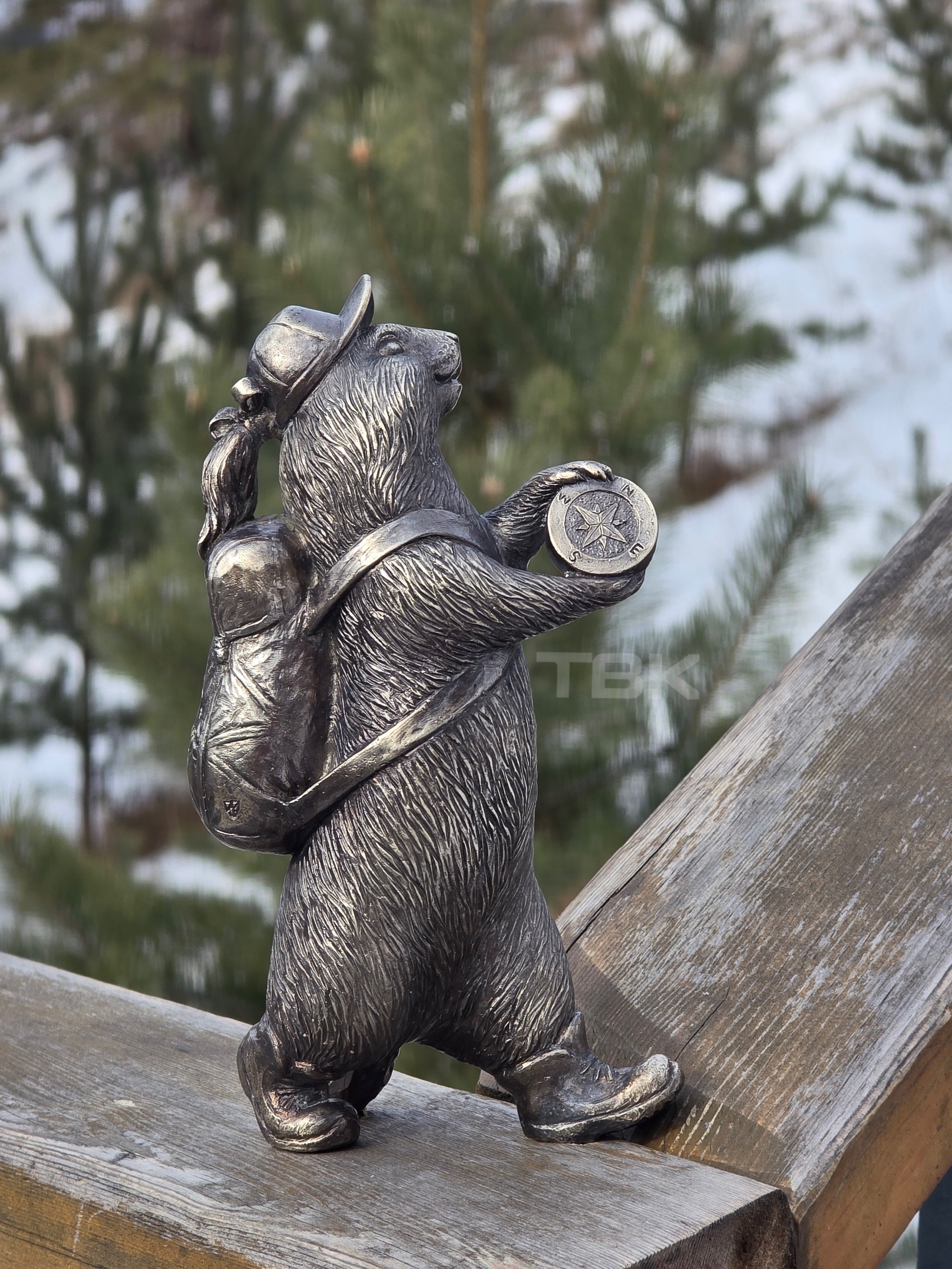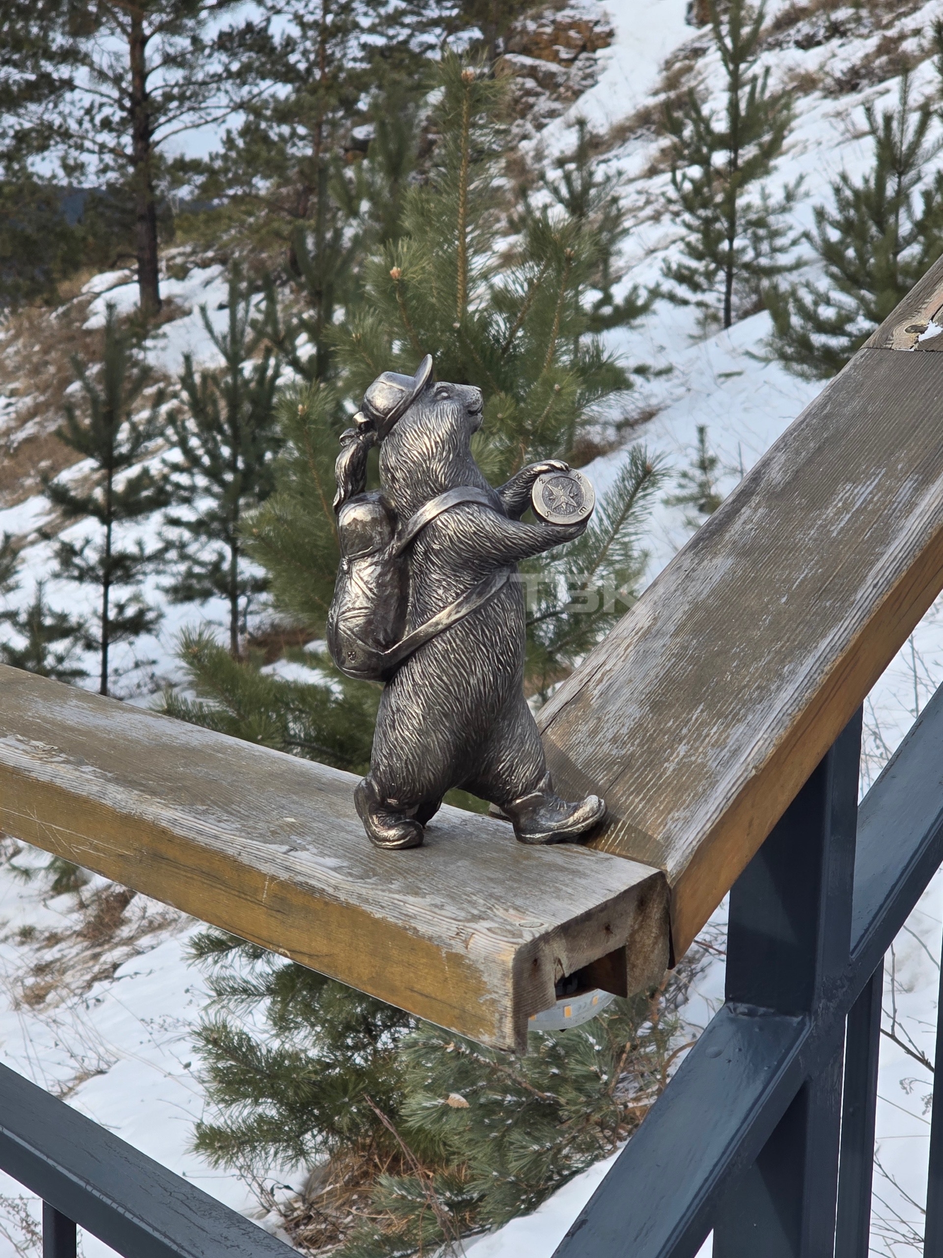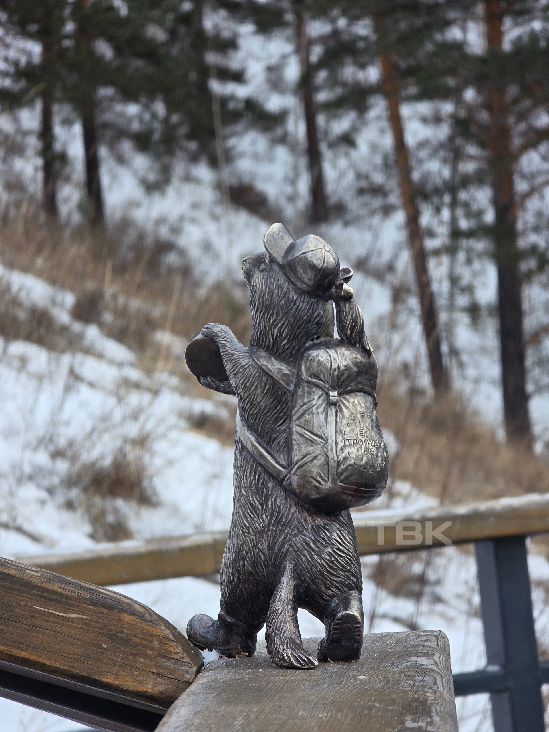 Новый бронзовый зверек появился на Торгашинской лестнице. Это девочка, которую назвали Тропушкой – имя выгравировано на ее рюкзаке. Она покровительствует путешественникам и держит в руках компас.
