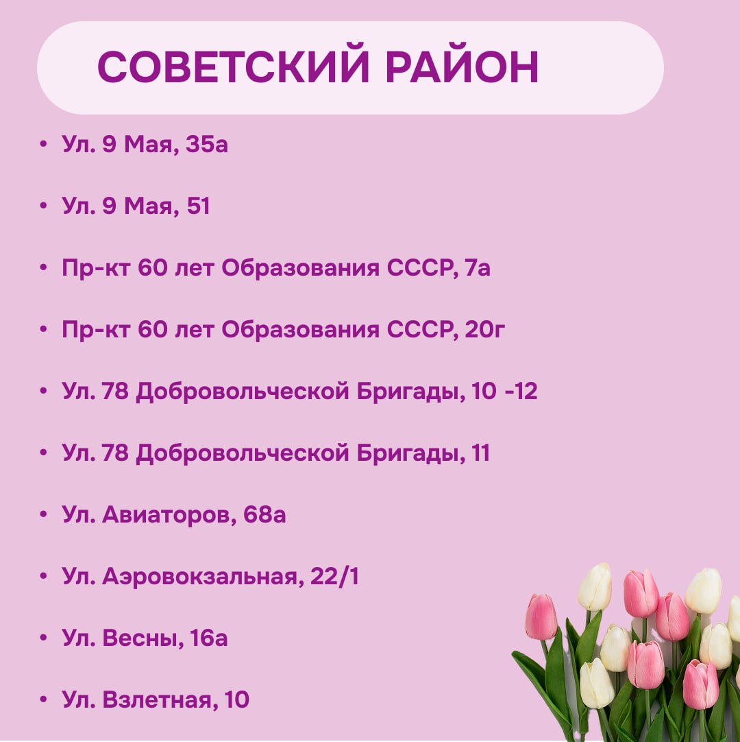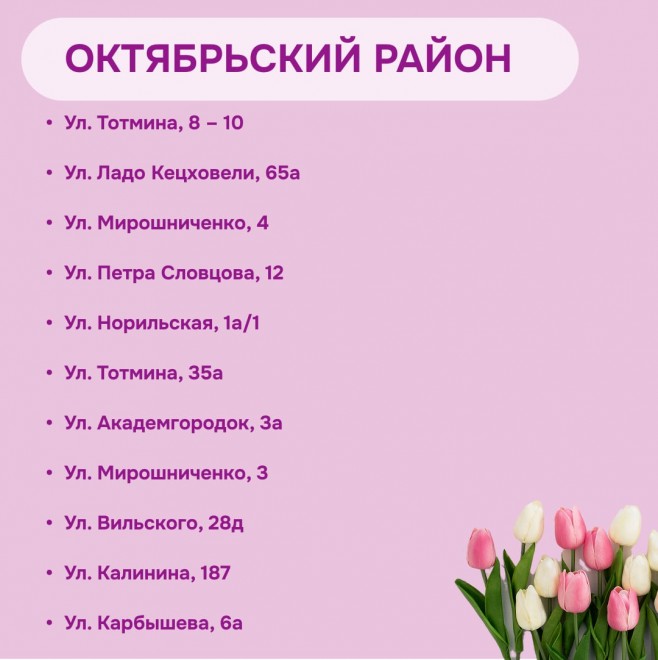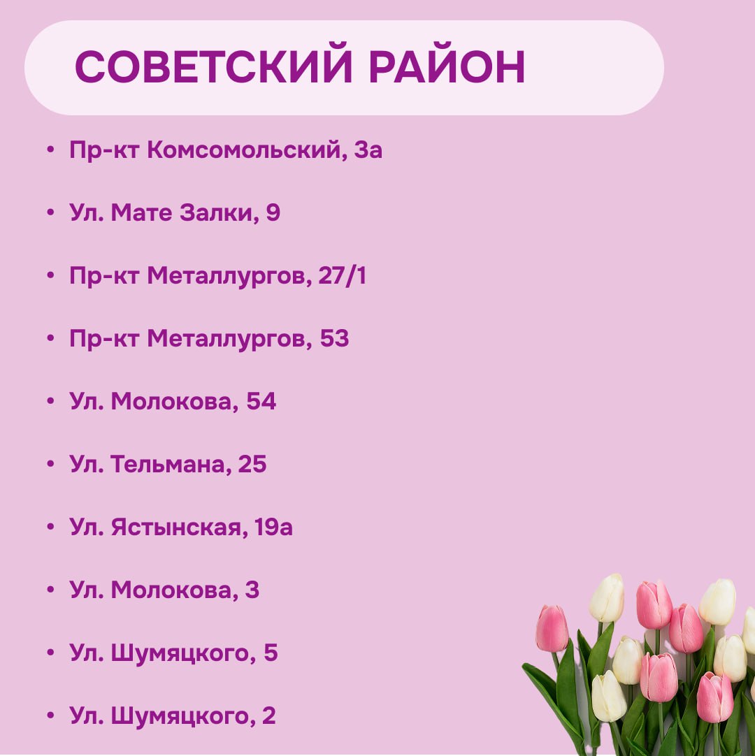 В мэрии рассказали, где будет разрешена продажа тюльпанов на уличных точках. В список попали чуть меньше 60 адресов.