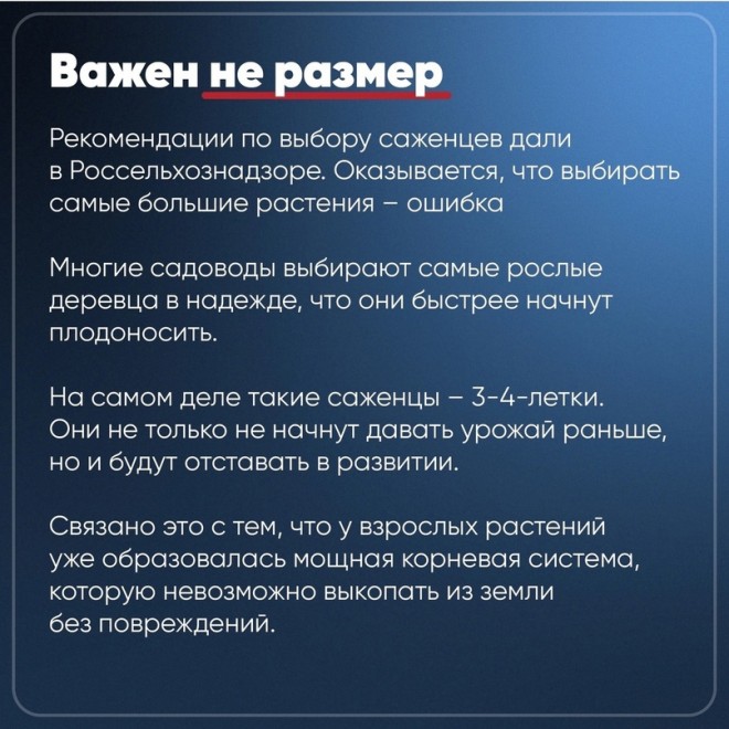 Как грамотно выбрать саженцы и всегда ли рослое деревце быстрее дает плоды? Ответы – в карточках ТВК.