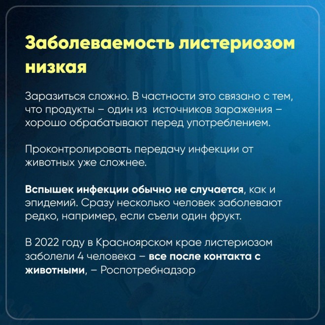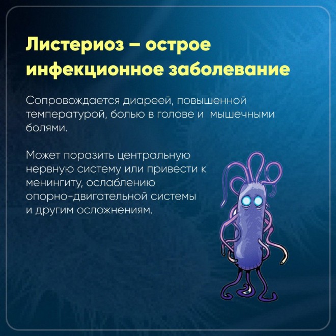 Листериоз – это острое инфекционное заболевание, которое способно привести к серьезным осложнениям. Насколько оно опасно и как можно им заразиться? Собрали ответы врача-инфекциониста Федерального Сибирского научно-клинического центра ФМБА России Елены Беховой в карточках ТВК.