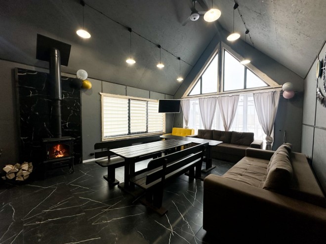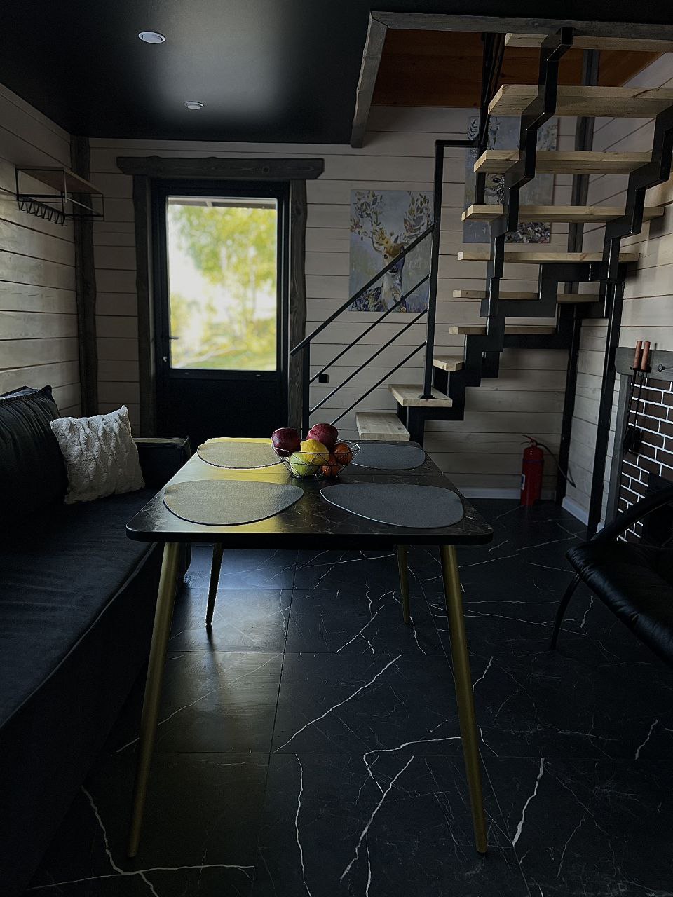 Внутри домов – современный ремонт, просторная кухня-гостиная. Спальная комната на втором этаже. В домах есть все необходимое для отдыха и комфортного сна. В одном доме могут отдыхать компании до 9 человек.