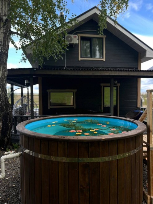 Горячая купель с джакузи оплачивается отдельно. Финская сауна находится в доме, пользоваться ей при аренде дома можно бесплатно.
