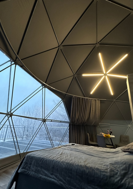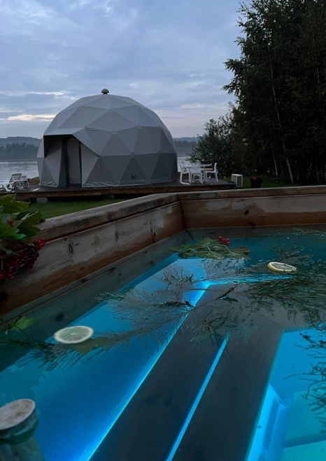 Новый глэмп-геокупол на берегу Енисея с панорамным видом расположен в 20 минутах езды от Красноярска. Здесь вы сможете совершить прогулку на лошадях, насладиться тишиной, а вечером погреться в банном чане или возле кострового места.