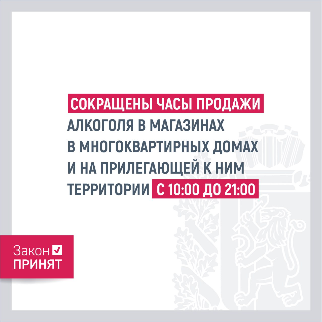 Также навсегда ограничили продажу алкоголя в точках, которые расположены в многоквартирных домах и пристройках к ним. Алкоголь будут продавать с 10:00 до 21:00.