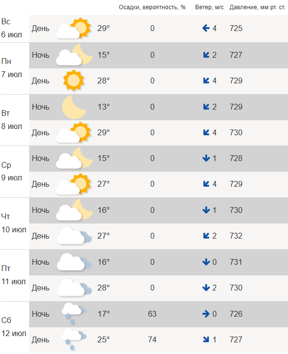 В четверг, 10 июля, в городе пасмурно, но тепло: воздух прогреется до +27°С, дождя не будет. Такая же погода ожидается и в пятницу: температура воздуха – до +28°С.
