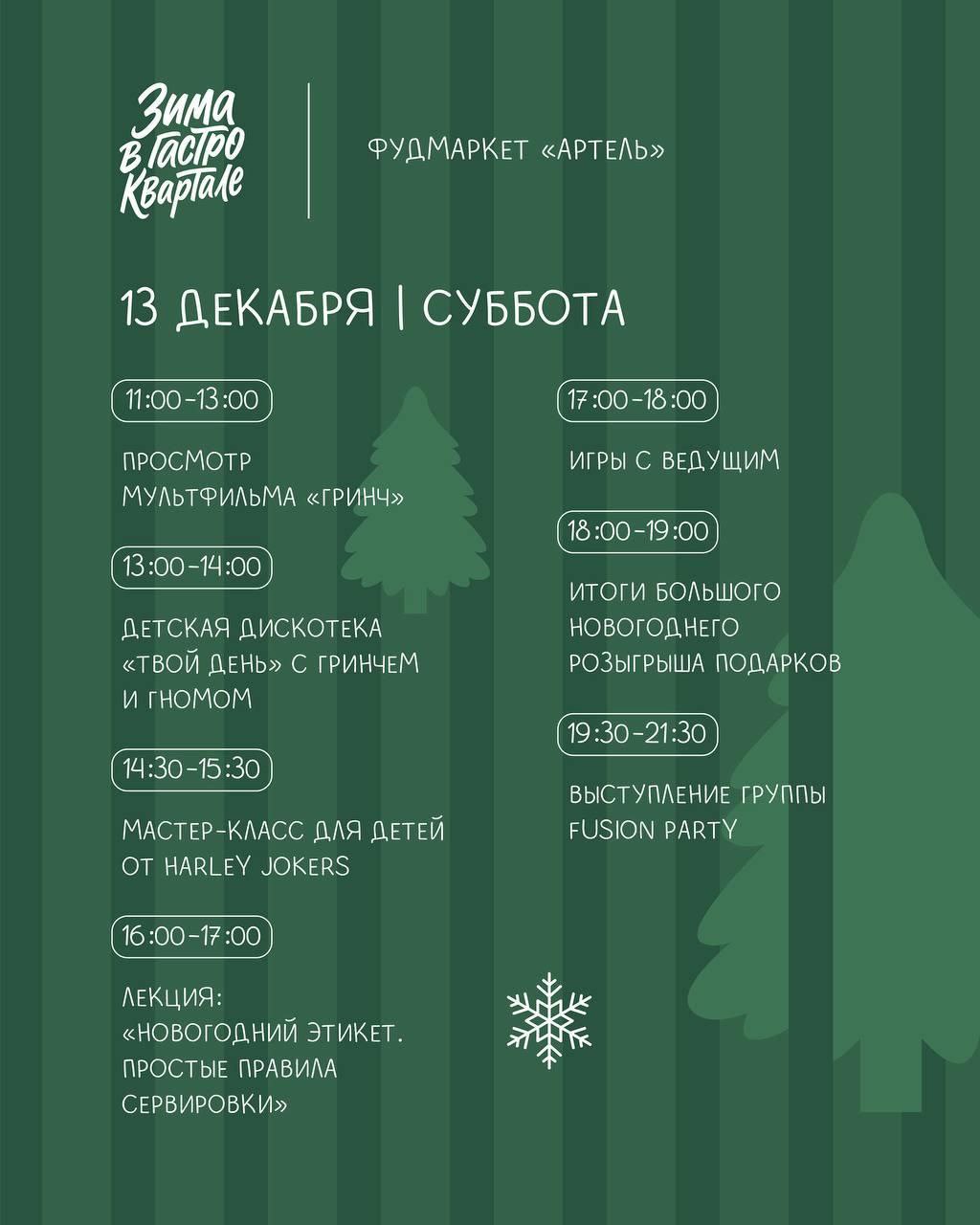 Вход свободный. Подробная программа фестиваля – в карточках.Гостей ждут новогодние лекции, встреча с Дедом Морозом и Снегурочкой, а также детская дискотека с Гринчем.