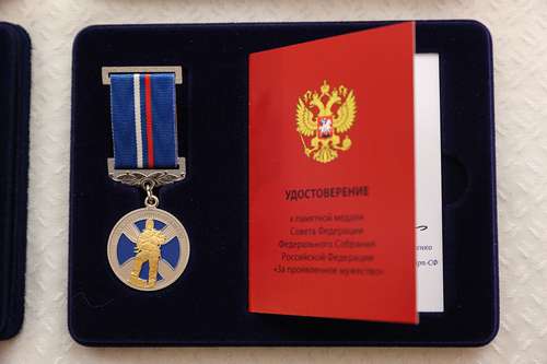 Председатель Совфеда Валентина Матвиенко и министр по делам ГО и ЧС Александр Куренков вручили 15-летнему подростку медаль «За проявленное мужество».